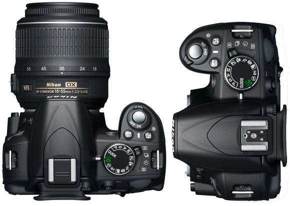 So với mẫu máy tiền nhiệm Nikon D3000, mặt trên máy bên cạnh vòng xoay chế độ có thêm một cần gạt chọn giữa 4 chế độ chụp, gần tương tự như kiểu thiết kế trên dòng G của Panasonic. Các nút điều khiển được bố trí ở cả mặt trên lẫn mặt sau dọc theo màn hình LCD. Các nút điều hướng phía sau máy không có tính năng truy cập nhanh thông số như một số dòng máy khác, các thao tác với máy chủ yếu thực hiện trên màn hình LCD.